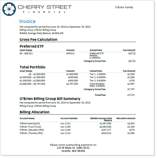 These are the steps to create, edit, or delete a billing PDF template, which you add to PDF reports to create billing statements. Billing statements allow you to send a statement to clients indicating that management fees have been paid, or how much is still owed. You can include billing invoices as a section in PDF templates or as their own stand-alone billing statement.