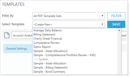 On the Client Reporting menu, under PDF Templates, click Templates.