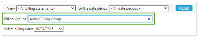 In Billing Groups, type in two or more letters. Click the appropriate billing group name when it appears.