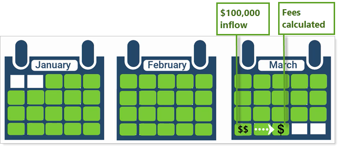 Cherry Street manages a client's accounts for an entire billing period. Two days from the end of the period, the client receives a $100,000 inflow. Cherry Street prorates capital flows at the account level. This ensures that, instead of billing the client as if they had managed the $100,000 for the entire period, Cherry Street only bills for the two days they actually managed it.