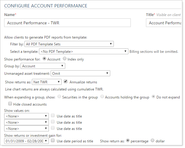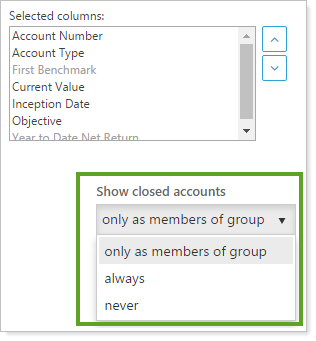 If a client account closes partway through a reporting period, you may want to show the account on the client portal until after the reporting period ends, to match performance.