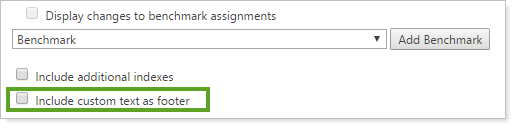 If you want to add custom footer text at the bottom of the report, select the Include custom text as footer check box. For details, visit Include Custom Footers for Disclaimers or Footnotes on Client Portals.