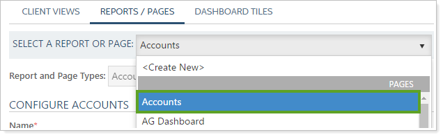 On the Reports / Pages tab, click a report in the Report and Page Types list.