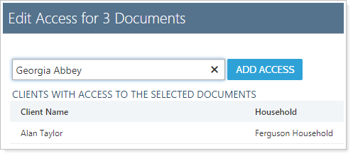 Click Add Access. You can also remove clients' access to files by clicking Remove on the Edit Access window.