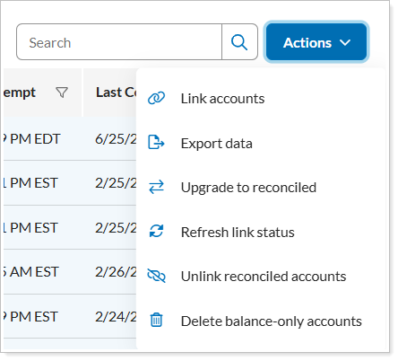 Access account actions in the row.