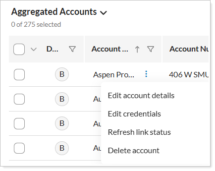 Aggregated Accounts Page Changes