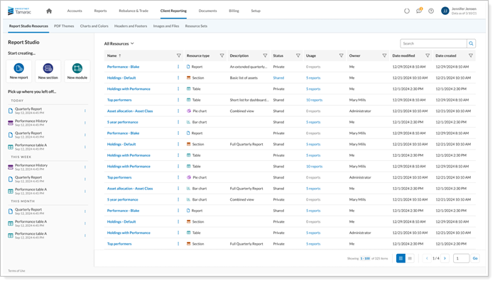 This update introduces a new Report Studio home page that makes it easier to see and organize all your saved and shared modules, sections, and reports. The new design helps you find what you use most, so you can keep track of your reports.
