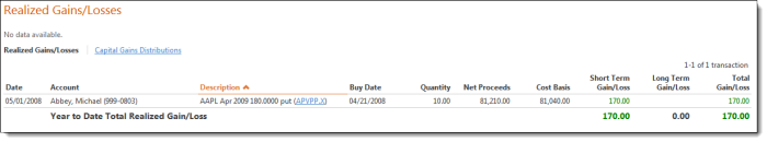In the Realized Gains/Losses sectiontitle section, select the Show capital gains distributions check box.