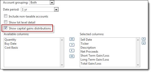 You now have the option to include capital gains distributions on the Realized Gains/Losses report.