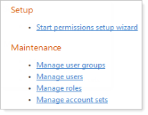 To start the Permissions Wizard, on the Setup menu, click Permissions, and then click Start setup wizard.