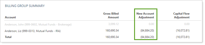 In the past, Tamarac swept new account adjustments into capital flows adjustments on the billing statement. While the calculation was correct, this didn't always clearly reflect to clients why the adjustment was applied.