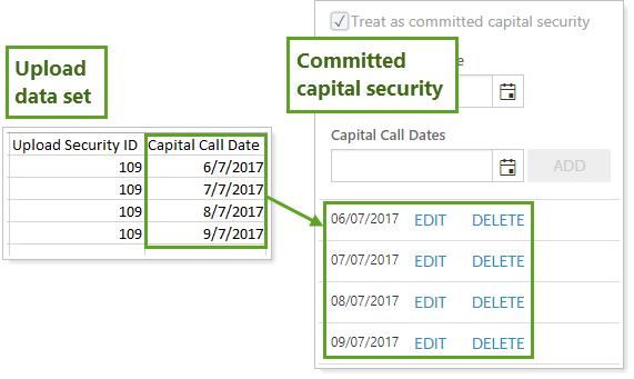 When you have many clients with committed capital securities, the new Capital Call Dates upload data set allows you to add call dates to one or more committed capital securities more efficiently.