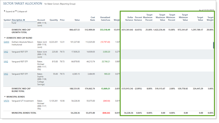 If you're like many advisors, you rely heavily on the Asset Allocation report for at-a-glance overviews of category weights and comparisons with model targets. With this release, you can combine the position-level Holdings report data with category-level target allocation data for an expanded, more robust Holdings report.