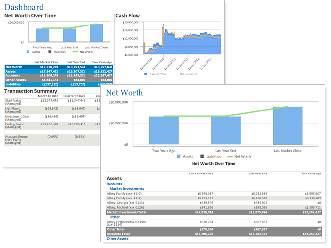 The chart on the dynamic Net Worth report shows at a glance how a client's financial situation changed over time. Now you can add this powerful and intuitive chart to your PDF reporting package with the new chart options on the Net Worth PDF full and dashboard sections.