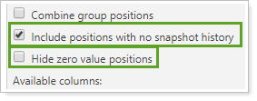 Include Positions With No Snapshot History: Use this setting to show or hide committed capital securities that have no manual security snapshots or transaction history.