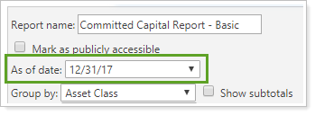 If a client has committed capital to a venture capital fund, you can track the payment information in the Committed Capital report. To enhance the flexibility and control you have when reporting on committed capital, we added and updated a few Committed Capital report settings.