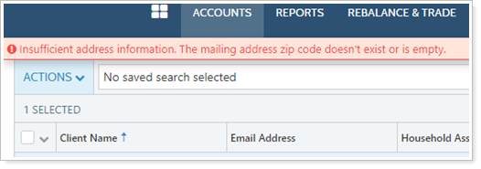 Errors are much more specific, helping you identify exactly what to correct. For example, if the Household address did not include a zip code, you'll get a message that says, Insufficient address information. The mailing address zip code doesn't exist or is empty.