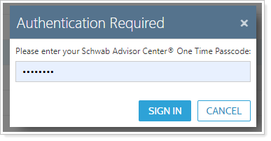 If your OTP has expired, you'll see a dialog asking you to re-enter your Schwab OTP.