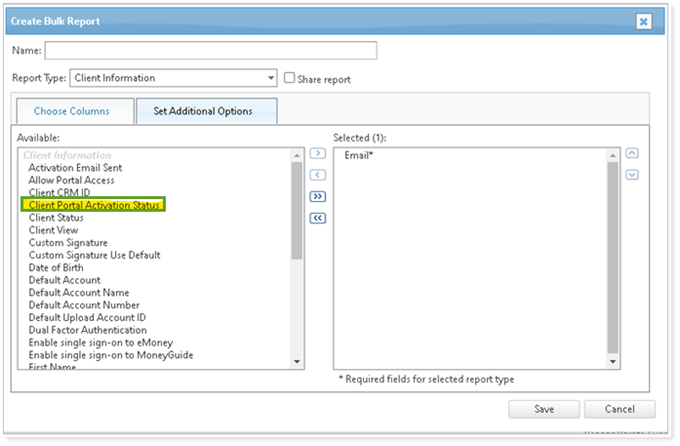 The client portal is a vital part of how you share important account information with your clients in a secure environment. After you complete your part of the client portal setup process, you will want to know if your clients have completed their portion of the setup process. With this release, we added the Client Portal Activation Status column to the Client Information bulk report.