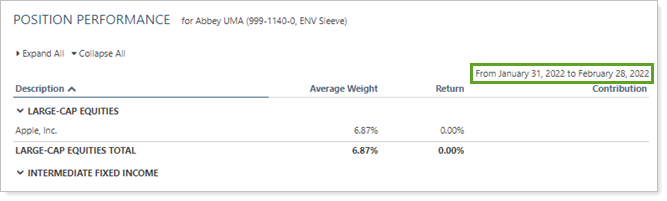 In the past, when you wanted to see the date period for the Position Performance report, you had to add Start Value and End Value columns to your report view. Now, the date period you select will appear on the report without additional steps.