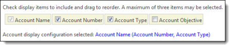 In the Template settings and name section, use the Single account display format lists to configure the appearance of the account type and objective.