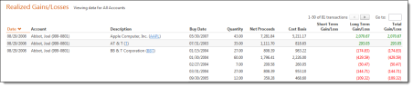 When you view realized gains and losses, you can now see the lot level detail. This enhancement makes it easy to comply with IRS requirements for listing gains and losses.