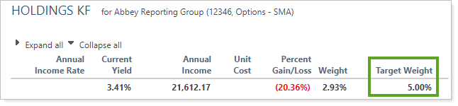 This new column, called Target Weight, is available in dynamic and PDF Holdings reports.