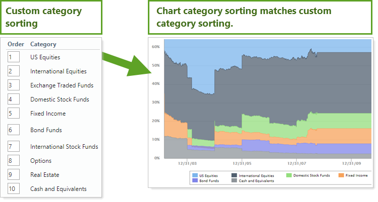 In a previous release, we adjusted this feature on the asset allocation over time chart. We heard your comments about this change, and we've put the category sorting back the way it was for the asset allocation over time chart. Now you can control the category order on both the dynamic and PDF versions of the Asset Allocation report by setting the category sort order, bringing that important firm-wide consistency to another part of your reporting package.