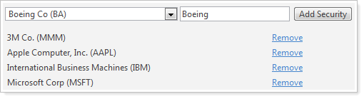 In the Search securities box, start typing the name or ticker of the security you want to search for. When you see it in the list, click Add Security. Repeat these steps for each security you want to appear on the report.