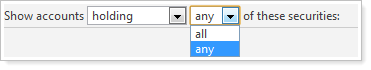 | Show accounts holding/not holding any/all of these securities |