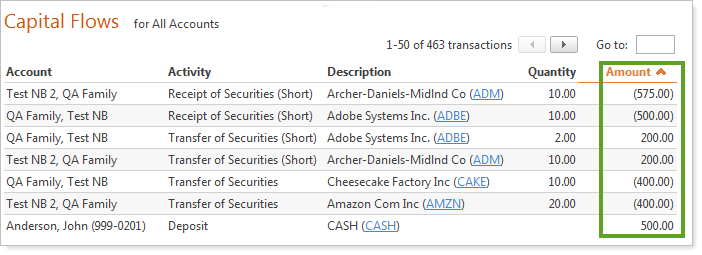 After this release, when you view the Capital Flows Report, withdrawals will now show as a negative number. Before this release, withdrawals appeared as a positive number. Withdrawals will also show as a negative number when you export the report to Excel®.