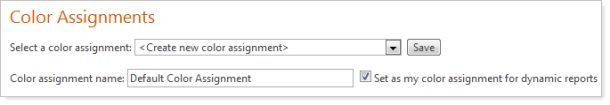 If you want to set the color assignments as the default color assignments that you see on the dynamic reports, select the Set as my color assignment for dynamic reports check box.