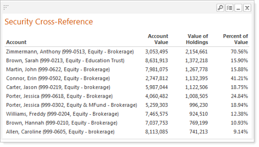 We're pleased to introduce the new Security Cross-Reference Report. This report lists all accounts and households that hold one or more securities that you specify. This report is based on the current trade date.