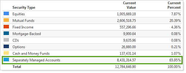 View Separately Managed Account Categories on the Asset Allocation Report