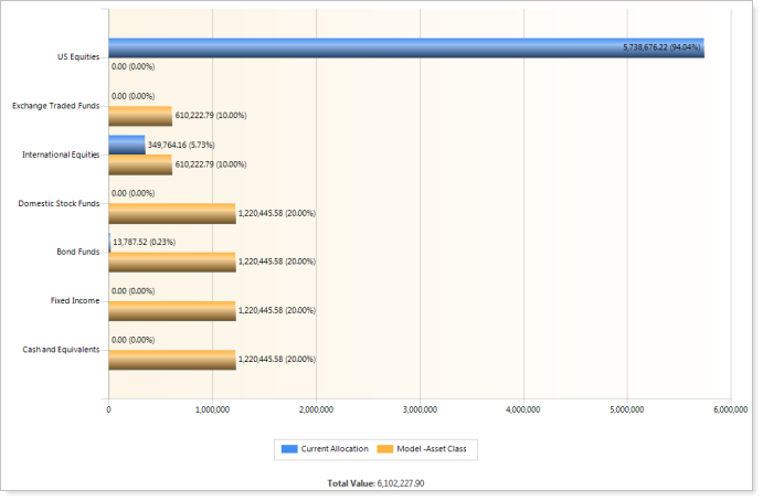 You now have the option to view a bar chart on the Asset Allocation PDF report. This car chart shows you the allocation of the account vs. the target allocation.