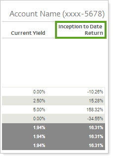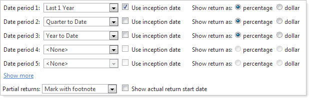 In addition, when using inception to date periods for your returns, some advisors want the flexibility to show the actual inception date on the column header. With this release, you can show the actual inception date in column headings.