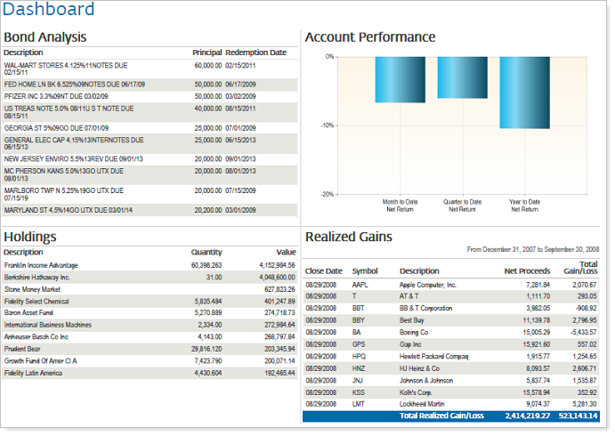 Over the years, we've heard that many of you wanted an enhanced PDF dashboard section. You told us that you wanted more available reports and formatting options. With this release of Advisor View, we're happy to give you the power to add the following reports to the PDF dashboard section:
