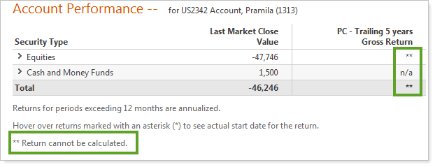 When you try to annualize returns and the losses exceed -100 percent, an error message will now display as a footnote on the report.