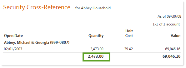 The Security Cross-Reference report now shows a total for the quantity when only one security is listed on the report.