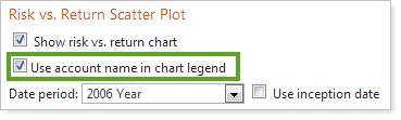 For each date period listed on a report, you can now easily show performance and investment gain in the account. If a bar chart appears on the report, you can also control the display of the return.