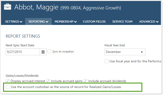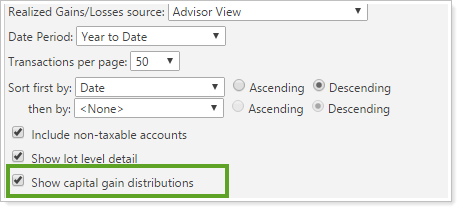 We have also added the ability to include capital gains distributions with custodial realized gain and loss data on all reports listed above. In the past, Advisor View prevented you from showing capital gains distributions when using the custodian as the source of record.