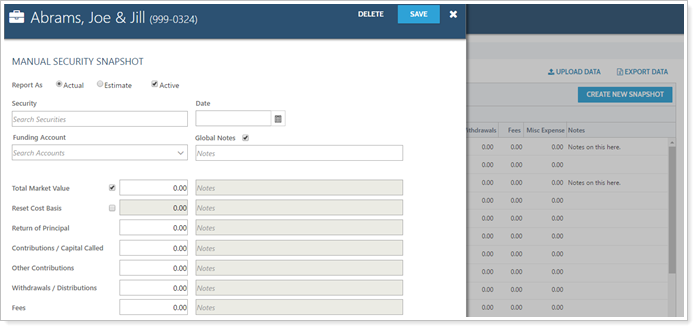 Enter Negative Values for Manual Security Snapshots