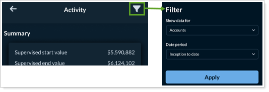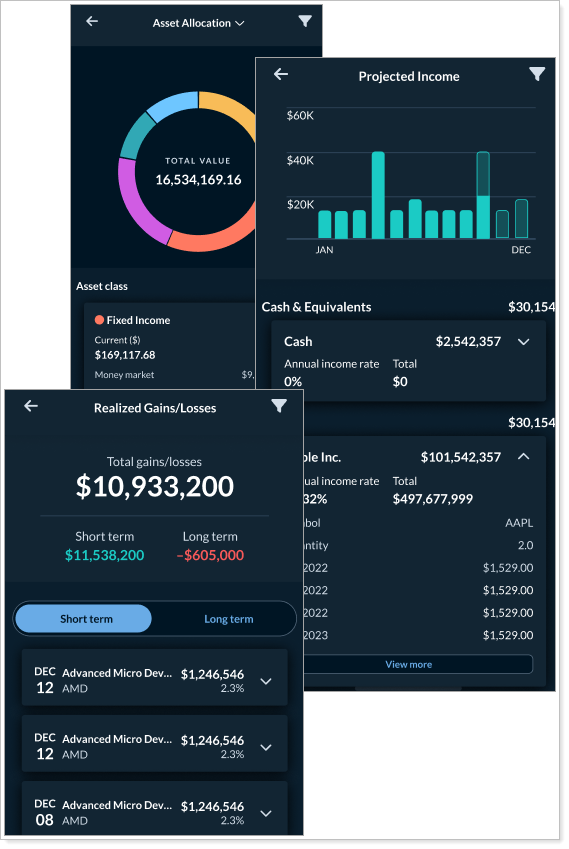 Mobile-friendly versions of every desktop page and widget, providing a comprehensive mobile client portal experience. Interactive charts and graphs provide additional detail when clients tap or press on data points.