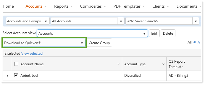 Your clients can now conveniently download account holdings, transactions, and securities to a QFX file, which can then be imported into Quicken®, increasing the accuracy and reliability of their data with a fast and simple download process. Note that Quicken may charge an annual fee for their service.