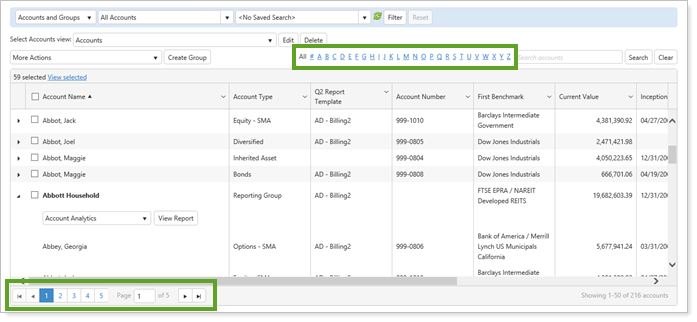 You can also find your accounts faster with the alphabetical links we added at the top of the page, or with the numbered page links at the bottom of the page if you don't know the name of the account.