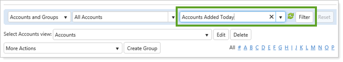 If you use a saved search to find an account, you now have control over when the search begins processing. It will now start only when you click the Filter button, instead of running immediately.