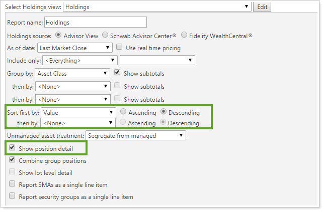 Holdings Report Updates for Filtering, Sort Order, Unmanaged Assets Options & Columns