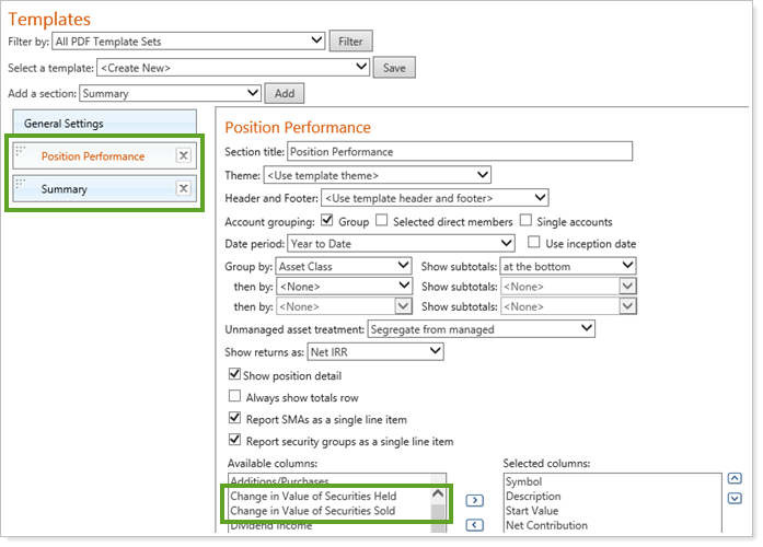 To reduce confusion and help you show detailed performance of positions, we have renamed columns in the Position Performance and Summary sections for PDF Templates: