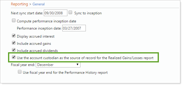 Set the Custodian as the Source of Realized Gains/Losses