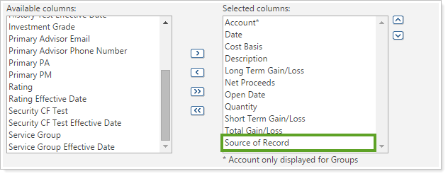 After this release, Advisor View can look to the account custodian file for the cost basis. You can add the new Source of Record column to see if the custodian file was used.